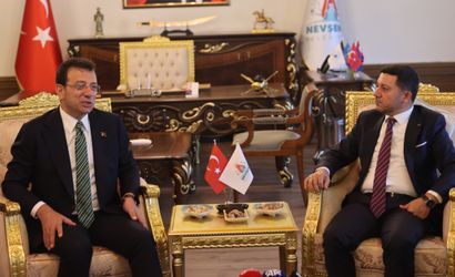 İstanbul Büyükşehir Belediyesi Başkanı Ekrem İmamoğlu, Nevşehir Belediye Başkanı Rasim Arı’yı ziyarete gitti. KİPTAŞ Hacıbektaş Mihmandar Projesi teslim törenine katılmak üzere Nevşehir’e gelen İmamoğlu, belediyeyi de ziyaret etti. Belediye binası önünde Arı tarafından karşılanan İmamoğlu, daha sonra başkanlık makamına geçerek burada kısa bir konuşma yaptı. Arı ise yaptığı konuşmada İmamoğlu ile ortak noktalarının olduğunu belirtirken, iki ismin de seçimi 2 kez kazandığına dikkat çekti. Ayrıca Ekrem İmamoğlu ile Türkiye Belediyeler Birliği encümeninde de birlikte olduklarını kaydeden Arı, Nevşehir’e aşık olduğunu ifade etti.