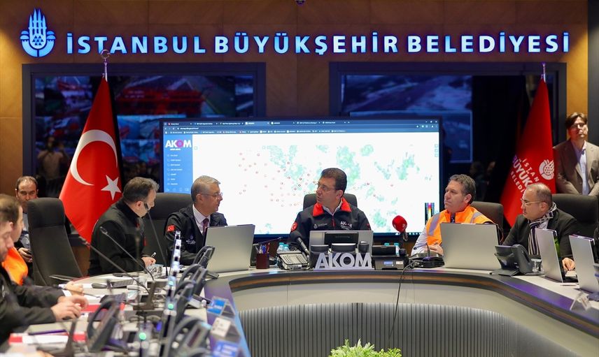 İstanbul Büyükşehir Belediye (İBB) Başkanı Ekrem İmamoğlu, kentte etkili olan olumsuz hava koşullarına karşı Afet Koordinasyon Merkezi'nde (AKOM) yürütülen çalışmaları yerinde takip etti. İBB'den yapılan açıklamaya göre, İmamoğlu, burada çalışmalar hakkında uzman isimlerden bilgi aldı.