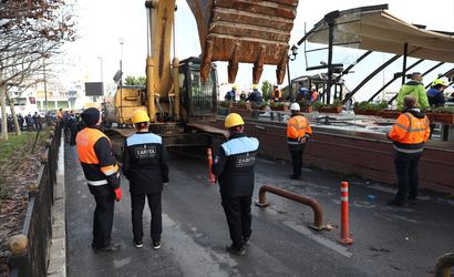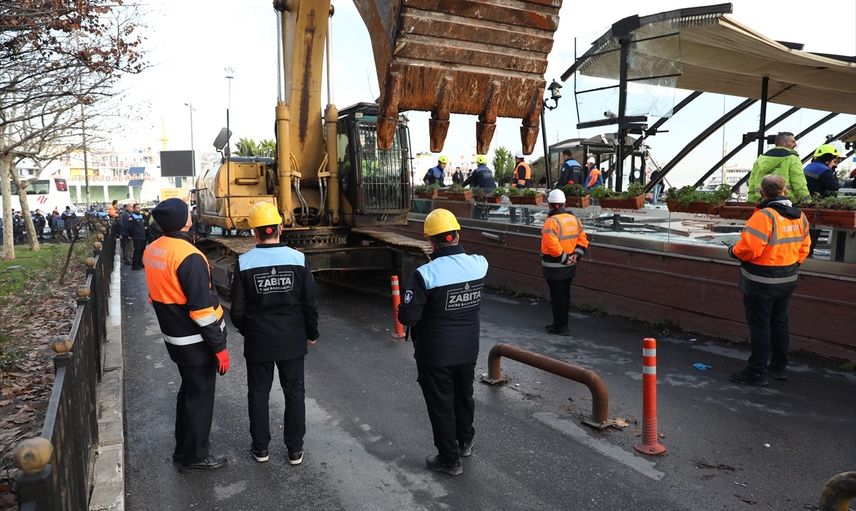 İstanbul Büyükşehir Belediyesi (İBB), Fatih'te Sirkeci Garı ile iskele arasında bulunan tarihi eser niteliğindeki yapıda faaliyet gösteren kaçak kafeteryanın yıkıldığını bildirdi.