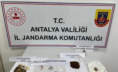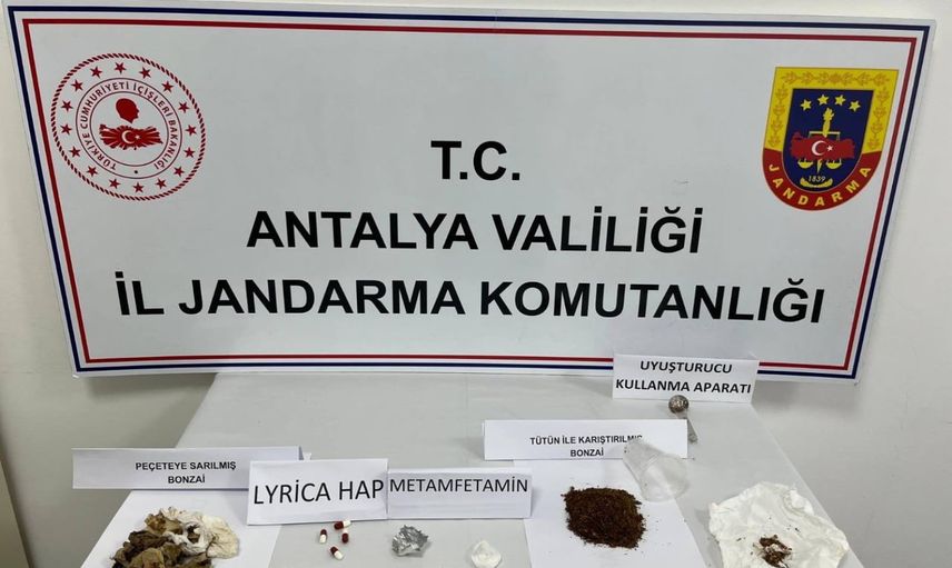 Aramalarda ele geçirilenler: 4 adet Lyrica hap, 10 gram metamfetamin, 102 gram bonzai ve 1 adet metamfetamin kullanma aparatı.