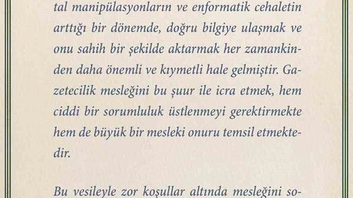 İbrahim Kalın’dan 10 Ocak Çalışan Gazeteciler Günü mesajıMİT Başkanı, doğru bilgi ve mesleki sorumluluğa dikkat çektiMilli İstihbarat Teşkilatı (MİT) Başkanı İbrahim Kalın, 10 Ocak Çalışan Gazeteciler Günü dolayısıyla tüm basın mensuplarını kutladı. Kalın, kamuoyunun doğru ve güvenilir şekilde bilgilendirilmesinin önemine…