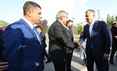 İçişleri Bakanı Ali Yerlikaya (sağda), çeşitli temaslarda bulunmak üzere geldiği Ağrı'da, Patnos Belediyesini ziyaret etti.