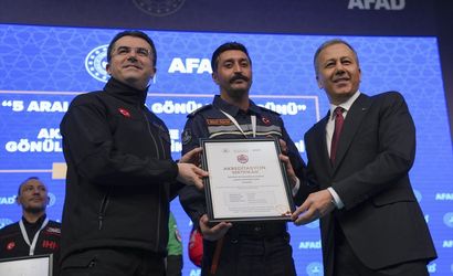 Bakan Yerlikaya, AFAD gönüllü sayısının 6 Şubat öncesi 623 bin iken bugüne ulaştığını belirterek, toplamda 1903 mahalle muhtarına afet bilinci eğitimleri verildiğinin altını çizdi. Yerlikaya, Türkiye'nin insan ve dayanışma odaklı vizyonla güçlendiğini vurgulayarak, "Bu tören, sizin insanlık için üstlendiğiniz fedakarlığın bir nişanesidir" dedi.