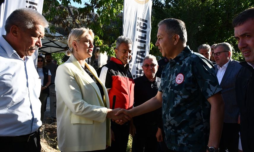 İçişleri Bakanı Ali Yerlikaya, orman yangınlarından etkilenen Bilecik'in Osmaneli ilçesi Soğucakpınar köyüne bağlı Kaşıkçı Mahallesi ile Gölpazarı ilçesine bağlı Köprücek köyünde incelemelerde bulundu.