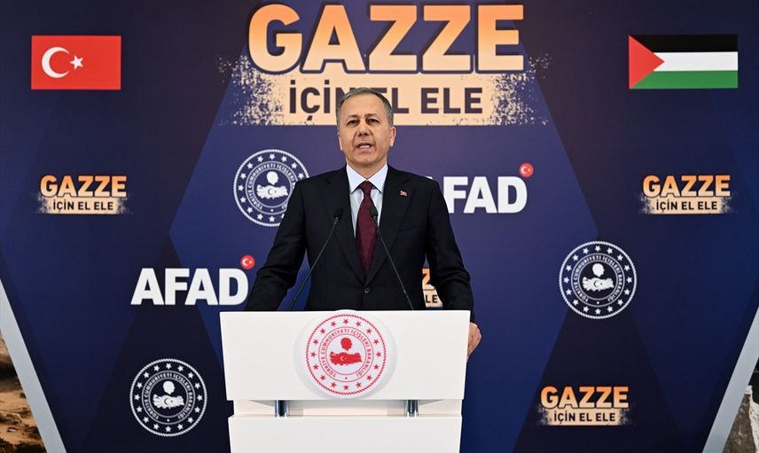 İçişleri Bakanı Ali Yerlikaya, Afet ve Acil Durum Yönetimi Başkanlığı (AFAD) koordinasyonunda sivil toplum kuruluşlarıyla başlattıkları "Gazze için El Ele Yardım Kampanyası"nın tanıtım programına katılarak konuşma yaptı.