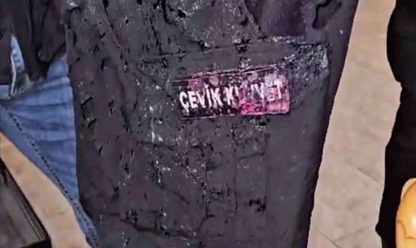 İçişleri Bakanı Ali Yerlikaya, sosyal medya hesabından, İstanbul Büyükşehir Belediyesine yönelik başlatılan yolsuzluk ve terör soruşturmasına ilişkin bu gece Saraçhane'de düzenlenen gösterilerde üzerine asit atılan bir polis memurunun üniformasını paylaştı.