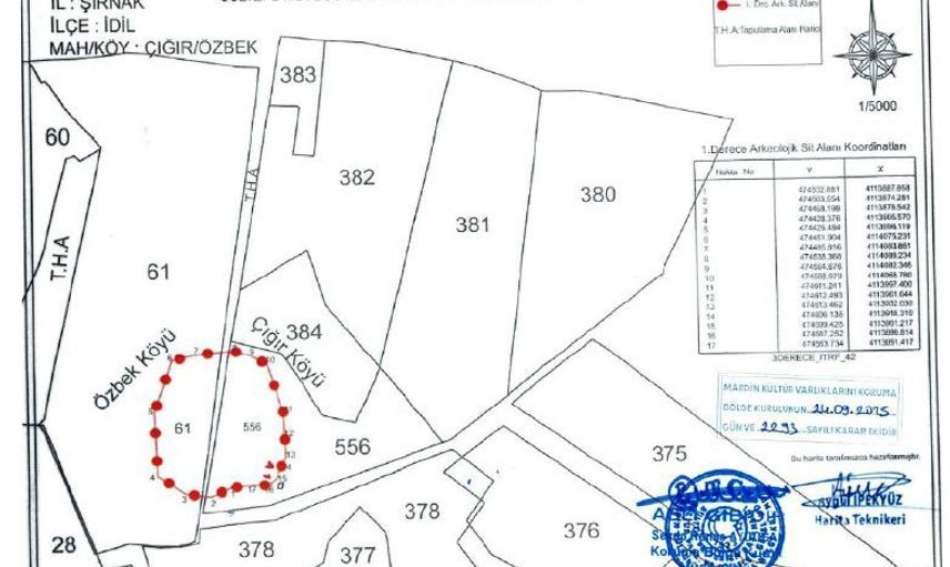 İdil ilçesine bağlı Çığır köyündeki tapulama harici alanlar ve özel mülkiyete ait 556 parsel ile Özbek köyündeki 61 parsel, 1’inci derece arkeolojik sit alanı olarak tescil edildi. Söz konusu parsellerin tapu kayıtlarına "Bir kısmı I. Derece Arkeolojik Sit Alanıdır" şerhi işlenecek.