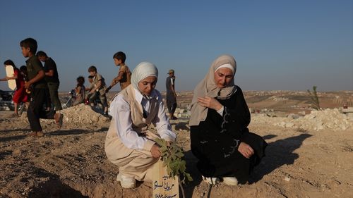 İdlib'in Hiş köyünde, Dünya Zorla Kaybedilenler Günü kapsamında akıbeti bilinmeyen kişiler anısına 500'den fazla incir fidanı dikildi.
