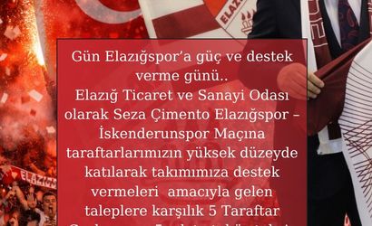 Elazığ Ticaret ve Sanayi Odası Başkanı İdris Alan, bordo beyazlı taraftarların İskenderunspor maçı için yaptığı otobüs talebine yanıt vererek taraftarlara 5 otobüs tahsis ettiğini sosyal medya üzerinden duyurdu.