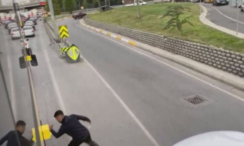 Şoför, yolculara “Ben araç kullanırken telefonla konuşamıyorum, polisi arayıp plakalarının fotoğraflarını çeker misiniz” diye seslendi. Bu sırada otobüste bulunan yolcular korku dolu anlar yaşadı.