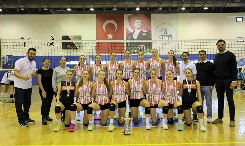 İEÜ Kadın Voleybol Takımı, İzmir Bölge Şampiyonası'nı set vermeden kazandı