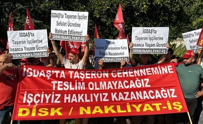 Devrimci İşçi Sendikaları Konfederasyonuna (DİSK) bağlı Nakliyat-İş Sendikası üyesi olan ve İGDAŞ'ta taşeron olarak çalışan işçiler, maaşlarına zam, kadro ve toplu sözleşme hakkı talepleriyle İstanbul Büyükşehir Belediyesi (İBB) önünde eylem yaptı.