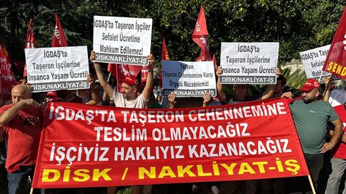 İGDAŞ Taşeron İşçileri Eylemde Devrimci İşçi Sendikaları Konfederasyonuna (DİSK) bağlı Nakliyat-İş Sendikası üyesi taşeron işçiler, İstanbul Büyükşehir Belediyesi (İBB) önünde hakları için toplandı. İşçiler, maaş artışı, kadro ve toplu sözleşme taleplerini dile getirdi. Talep ve Sloganlar Saraçhane'deki belediye binası önünde…