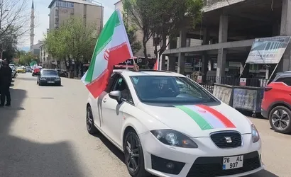 Katılımcılar, Topçular Mahallesi Vali Yolu üzerinde toplanarak geniş katılımlı bir konvoy düzenledi. Konvoyda yer alan araçlar Türk, İran, Azerbaycan ve Filistin bayrakları ile süslendi ve şehir merkezinde dikkat çeken bir kortej oluştu.