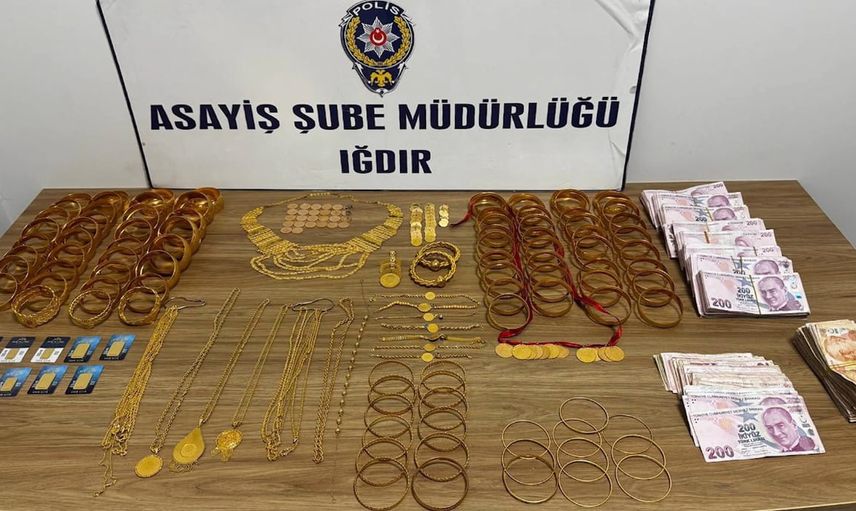 Iğdır İl Emniyet Müdürlüğü Asayiş Şube Müdürlüğü Hırsızlık ve Yankesicilik Büro Amirliği ekiplerinin yürüttüğü soruşturmada, şüphelilerin araç ve ikametlerinde yapılan aramalarda toplam 2 kilo 770 gram altın ile 190 bin TL ele geçirildi. Ayrıca şüphelilerin çaldıkları altınların bir kısmını bozdurarak satın aldıkları tespit edilen araca da el konuldu.