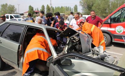 Iğdır'da Necmettin Altınsoy'un kullandığı 22 RT 530 plakalı otomobil, merkeze bağlı Yukarı Çarıklı köyü yakınlarında sürücüsü ve plakası henüz öğrenilemeyen iş makinesiyle çarpıştı. Çevredekilerin ihbarı üzerine kaza yerine AFAD ve Iğdır Belediyesine bağlı itfaiye ekipleri sevk edildi. Kazada sürücü Altınsoy ile araçtaki Zarife Abbasova yaralandı. Araçta sıkışan yaralılar, ekiplerin çalışmasıyla bulundukları yerden çıkarıldı.
