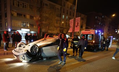Iğdır'da meydana gelen trafik kazasında, Fatma Nur A. yönetimindeki 34 GNE 892 plakalı otomobil, Enver Paşa Caddesi üzerinde park halindeki hafif ticari araca çarparak devrildi.