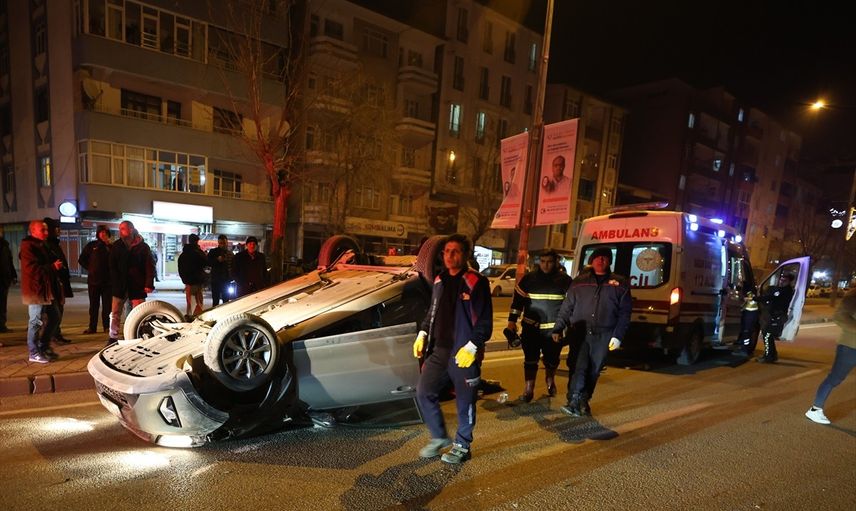 Iğdır'da, park halindeki araca çarptıktan sonra devrilen otomobilin sürücüsü yaralandı.