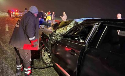 Çarpmanın etkisiyle otomobilde sıkışan sürücü, olay yerine sevk edilen itfaiye arama kurtarma ekipleri tarafından araçtan çıkarıldı.