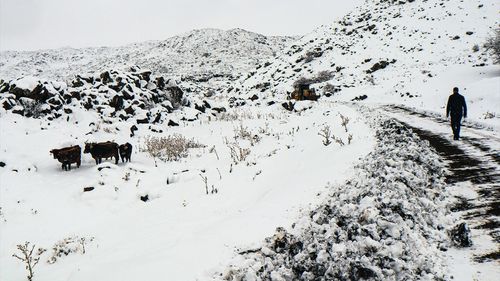 Iğdır'ın dağ köylerinde mevsimin ilk karı sonrası besicilerin zorlu kış dönemi başladı.
