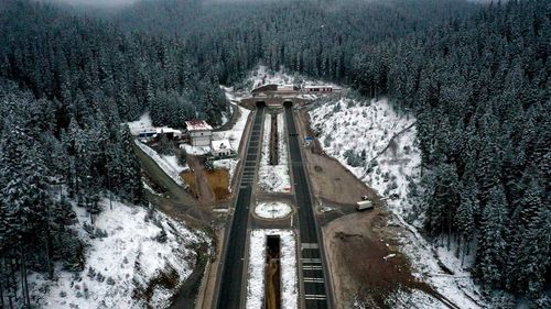 Ilgaz Dağı'nda kar yağışı ve sis etkili olurken, bölgede doğal güzellikler dron ile görüntülendi.
