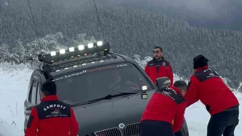 Ilgaz Dağı'nda KAMPOFF üyeleri off-road araçlarına bağladıkları lastiklerle kayma etkinliği düzenleyerek Kastamonu'nun kış turizmine dikkat çekti.