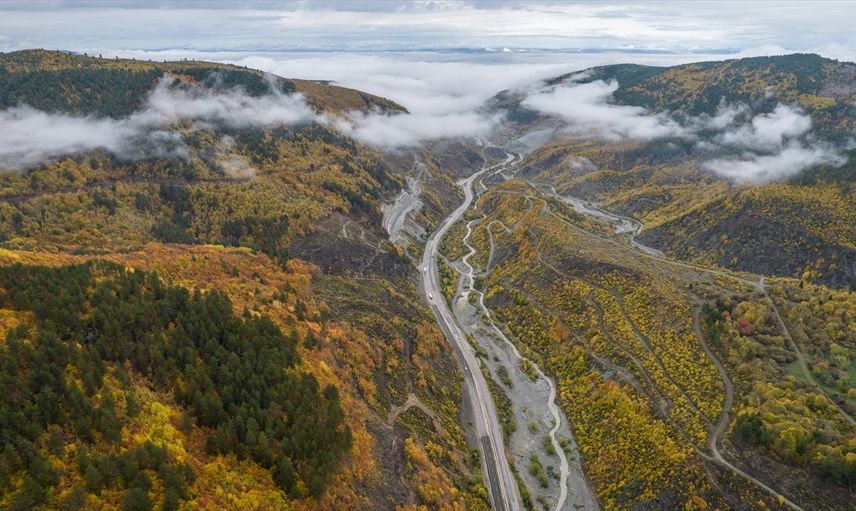 Türkiye'nin önemli kayak ve kış turizmi merkezlerinden Ilgaz Dağı'nın yüksek kesimlerinde etkili olan sis, sonbahar renkleriyle beraber güzel görüntü oluşturdu.
