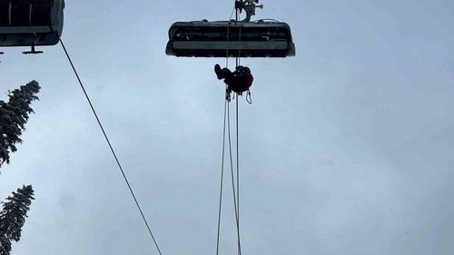 Ilgaz Dağı Yurduntepe Kayak Merkezi'nde JAK ve AFAD ekipleri, telesiyejde arıza senaryosuyla sezon öncesi arama-kurtarma tatbikatı gerçekleştirdi.