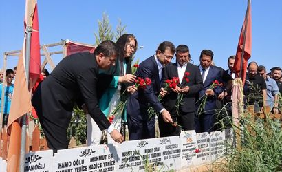 Türkiye Belediyeler Birliği (TBB) ve İstanbul Büyükşehir Belediye (İBB) Başkanı Ekrem İmamoğlu(sağ3), Adıyaman ziyaretleri kapsamında Yeni Mezarlığı ziyaret ederek, depremlerde hayatını kaybedenler için dua etti.