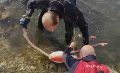 İnciraltı'nda İplere Dolanan Flamingo, İzmir İtfaiyesi Dalgıçları Tarafından Kurtarıldı
