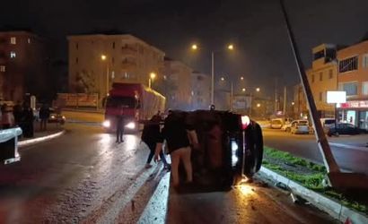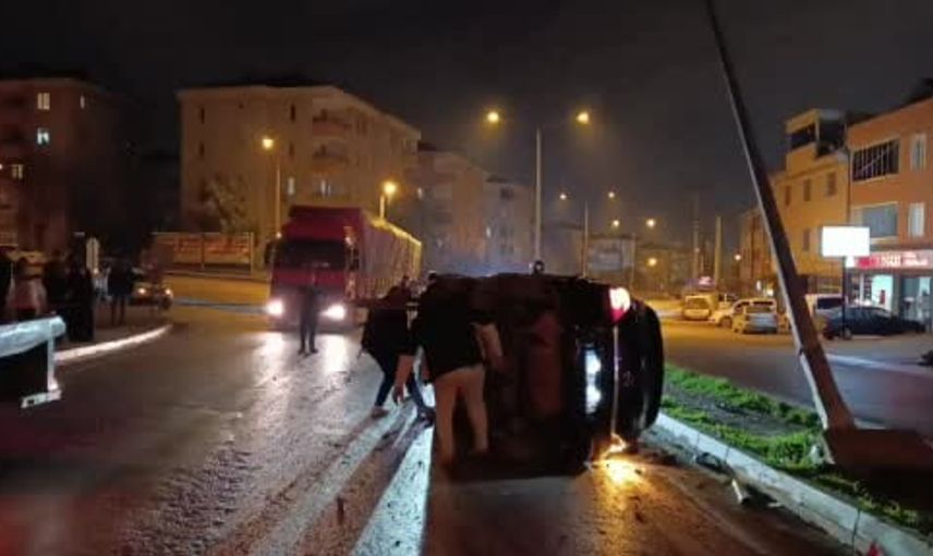Araç savrularak takla attı ve refüjdeki aydınlatma direğine çarparak yan durdu. Kaza sonucu sürücü ile araçtaki yolcular G.S. (17) ile İ.T.G. (17) yaralandı.