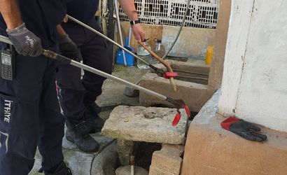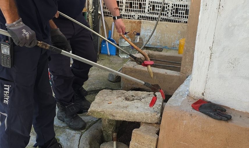 Olay, evin bahçesindeki su oluğundan gelen seslerin fark edilmesiyle başladı. Durumu fark eden vatandaşlar, hemen itfaiye ekiplerine bilgi verdi. Olay yerine gelen itfaiye erleri, titizlikle yaptıkları müdahale ile su oluğunda sıkışmış olan oluklu kertenkeleyi çıkarttı.