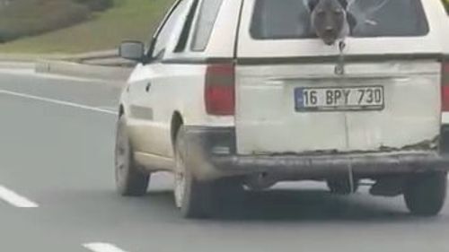 İnegöl'de seyir halindeki kamyonetin kırık arka camından başını çıkaran köpek, trafikte gülümseten anlar yaşattı; görüntüler sosyal medyada ilgi gördü.