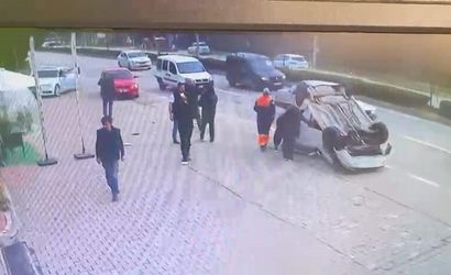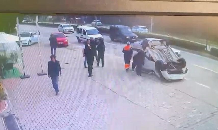 Kaza anı bir işyerinin güvenlik kamerasına yansıdı ve görüntülerde aracın refüje çarpmasının ardından takla atması yer aldı.