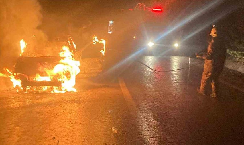 Durumu fark eden sürücü aracı yol kenarına park ederek itfaiyeye haber verdi. Bu sırada araçta yangın başladı ve kısa sürede alev aldı.