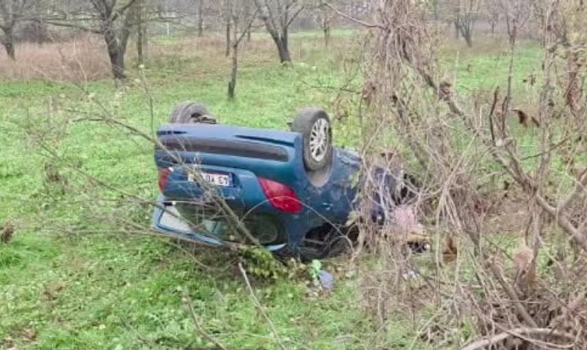 İnegöl'de yağışlı yolda kontrolden çıkan otomobil tarlaya uçtu
