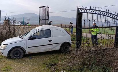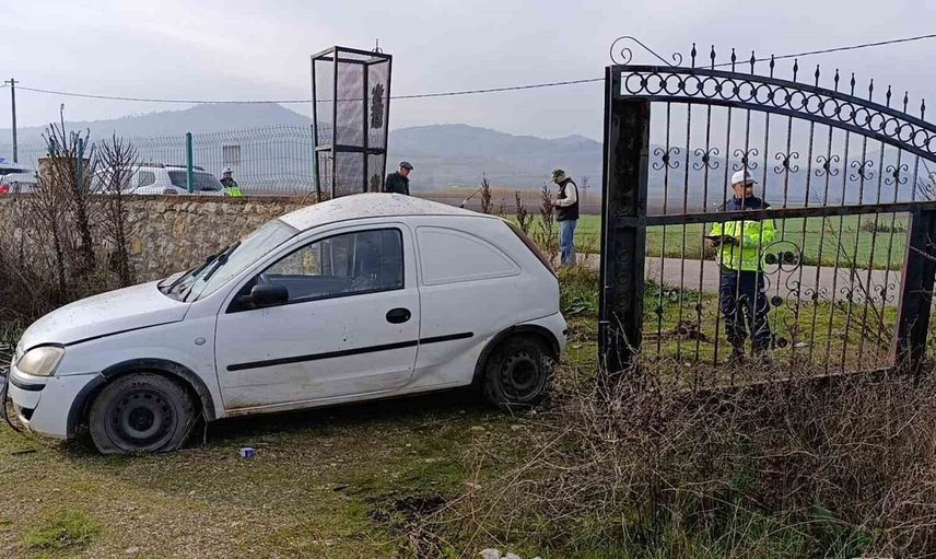 BURSA'NIN İNEGÖL İLÇESİNDE MEYDANA GELEN KAZADA OTOMOBİL EVİN BAHÇE KAPISINA ÇARPTI. KAZA SONUCU YARALANAN SÜRÜCÜ, BAYGINLIK GEÇİRMESİ SONUCU SAATLER SONRA BULUNDU.