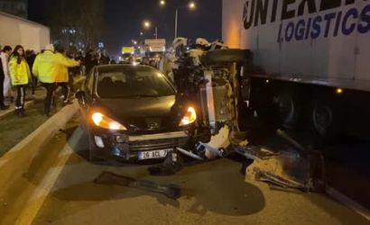 Aynı yöne seyreden Tamer D. (21) idaresindeki 16 DZ 410 plakalı hafif ticari araç, sürücüsünün kontrolünden çıkarak yolda bekleyen otomobile ve sol şeritte seyreden Makedonya uyruklu Mustafov Beazit (50) yönetimindeki GE 0464 AC plakalı tıra çarptı.