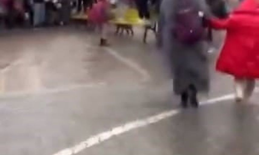 Mahmudiye Mahallesi'ndeki okuldaki kısa süreli yoğun yağışın ardından veliler, öğrencileri güvenli şekilde okuldan çıkarmak için harekete geçti. Veliler, okul bahçesindeki bankları sıralayarak adeta bir köprü oluşturdular ve öğrencileri bu düzenek üzerinden tahliye ettiler.