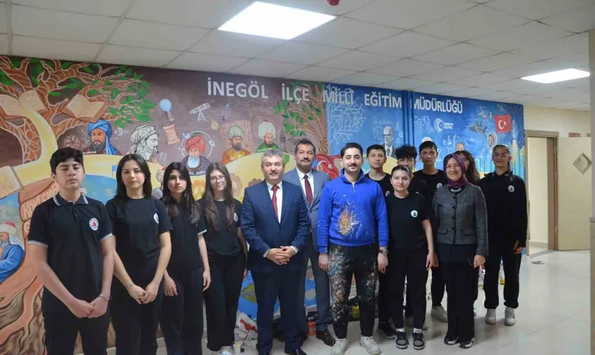 İnegöl'de öğretmenin duvar resmiyle 'Türkiye Yüzyılı Maarif Modeli' görselleşti