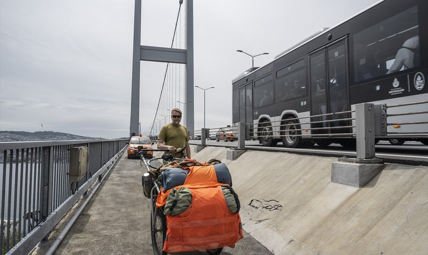 Kıtalar arası yolculuğun yalnızca yürüyerek de yapılabileceğini kanıtlamak amacıyla 26 yıl önce Şili'den evine ulaşmak için yola çıkan ve İstanbul'a gelen İngiliz gezgin Karl Bushby, özel izinle 15 Temmuz Şehitler Köprüsü'nü yürüyerek Asya'dan Avrupa'ya geçti.
