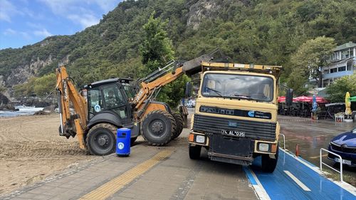 Bartın Irmağı'nın sürüklediği plastik şişe, bidon, boru, ağaç ve odun parçaları İnkumu sahilinde 3 kilometrelik şeridin bölümünde kirliliğe yol açtı; temizlik başlatıldı.