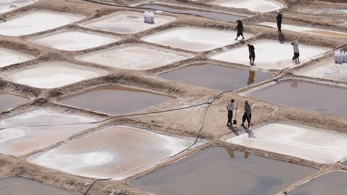 Irak'ın Süleymaniye kentinde tuz işçileri, kavurucu 45 derece sıcaklıkta yoğun mesai yaparak sofralarımıza tuz üretiyorlar.