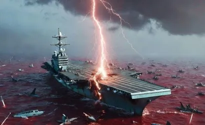 Görselde, fırtınalı ve kan kırmızısı tonların hakim olduğu bir denizde USS Abraham Lincoln uçak gemisinin hedef alındığı sahne yer aldı. Tasvirde, gemiye isabet eden bir yıldırımın yanı sıra ABD’ye ait savaş uçaklarının denize düşerek batmış şekilde gösterildiği belirtildi.