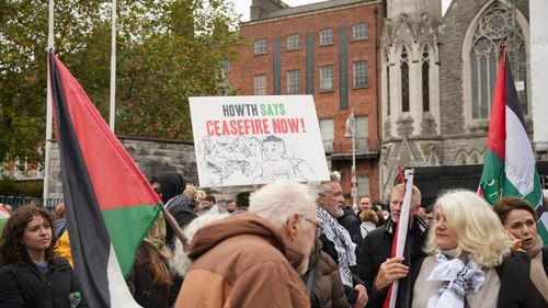 Dublin'de düzenlenen yürüyüşte binlerce kişi Filistin'e destek verdi, İrlanda hükümetine somut adım çağrısında bulundu.