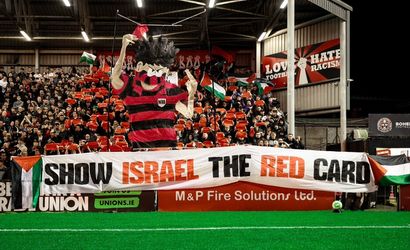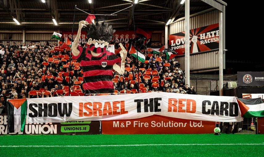 Soykırımcı İsrail'in Filistin'deki işgali ve Gazze ile Batı Şeria'daki saldırıları nedeniyle İskoçya ekibi Celtic'in 'Yeşil Tugay' (Green Brigade) taraftar grubunun başlattığı "İsrail'e kırmızı kart göster" çağrısına İrlanda'nın Bohemian takımı taraftarları da katıldı.