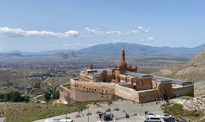 Ağrı'nın Doğubayazıt ilçesinde yer alan tarihi İshak Paşa Sarayı, Kurban Bayramı tatili nedeniyle yoğun bir ziyaretçi trafiğine ev sahipliği yapıyor. İlçenin güneyinde, tepelik bir alanda konumlanan bu tarihi yapı, doğu ve güney yönünde yüksek dağlarla çevrili bir konuma sahiptir.