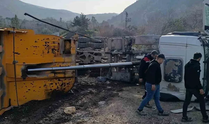 Kazada, kamyonun damperinin açık olduğu sırada aracın devrildiği ve sürücünün araç içinde sıkıştığı bildirildi.