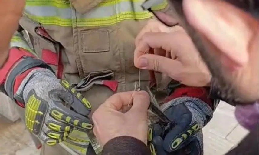 HATAY’IN İSKENDERUN İLÇESİ SAVAŞ MAHALLESİ’NDE DUVARDAKİ İPE DOLANAN BİR KUŞ MAHSUR KALDI. OLAYI FARK EDEN EKİPLER, MİNİK KUŞU BULUNDUĞU YERDEN DİKKATLİ BİR ŞEKİLDE KURTARDI.