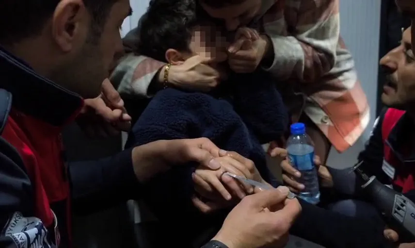 İtfaiye ekipleri, yüzüğü çıkarmak için çalışma başlattı; yapılan müdahale sonucunda yüzük kesilerek çocuğun parmağı serbest bırakıldı.